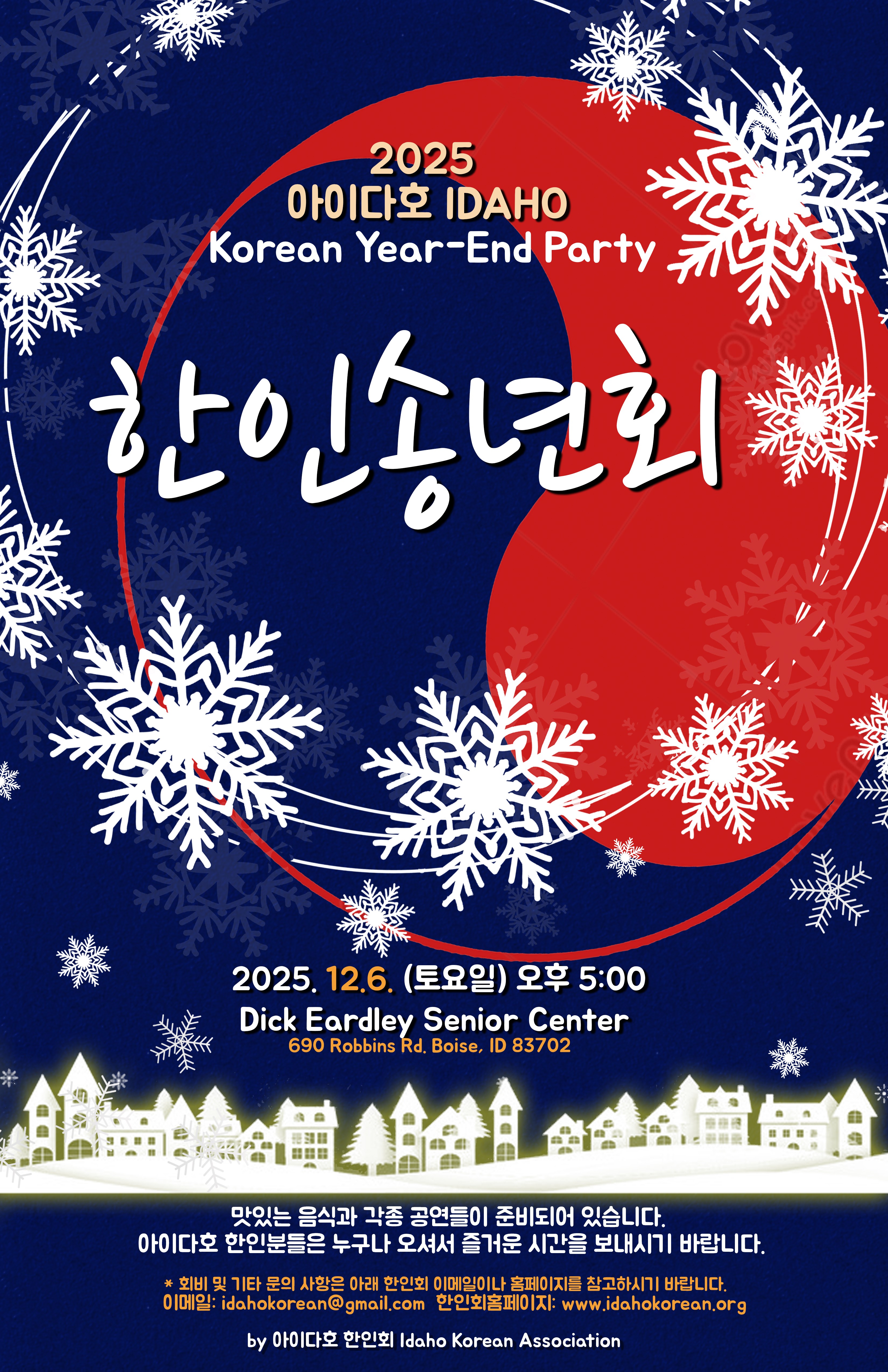 1) 아이다호 한인 송년 행사 (12월 6일, 토요일) ☞ 행사 포스터 참조